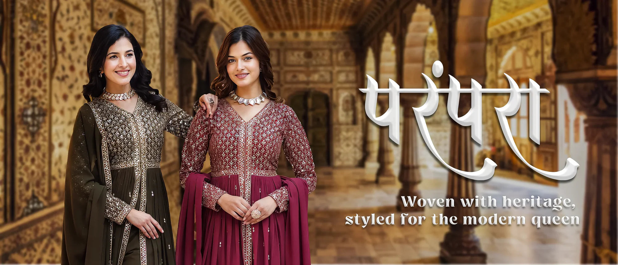 Parrot Designer Palazzo Suit – Luxury Thread & Sequins Embroidery